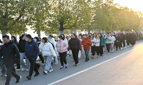 未参加欢乐跑的员工跟着大部队健步走。活动现场,大家精神饱满,兴致高昂,喊出响亮的口号,带上愉悦的心情,迈着轻快的步伐,沿着大龙湖运动跑道大步向前走。他们相互交流、互相鼓励,用朝气蓬勃、昂扬奋斗的精神面貌为寒冷的冬天增添一抹亮色。